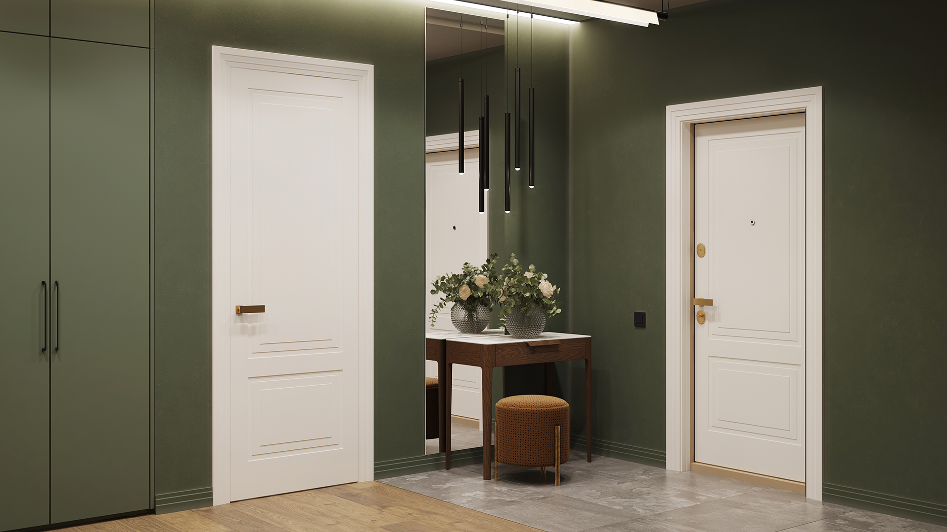 Главная особенность – накладная декоративная панель, которая устанавливается с обратной стороны и повторяет образ межкомнатных дверей, что позволяет создать цельный и завершённый дизайн интерьера.