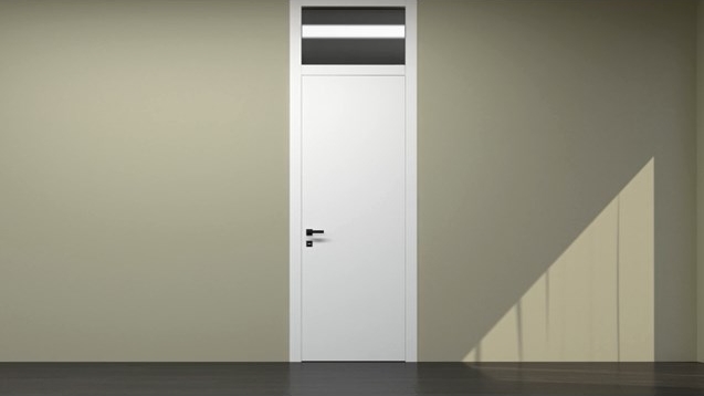 Классический короб обрамлен наличниками, а двери визуально слегка «утоплены» в короб. При этом полотно открывается только на себя.