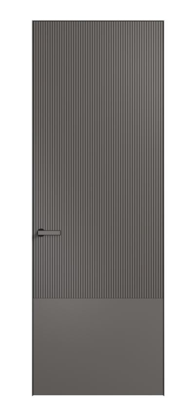 Это полотна с рельефной фрезеровкой. Этот прием делает интерьер объемным, тактильным, вносит интересную текстуру и создает современный образ. Волнистый рельеф может быть выполнен по ламелям из массива дуба в древесных матовых отделках, либо исполнен по натуральному и экологически безопасному материалу — ХДФ, покрытому гладкой эмалью актуальных оттенков.
